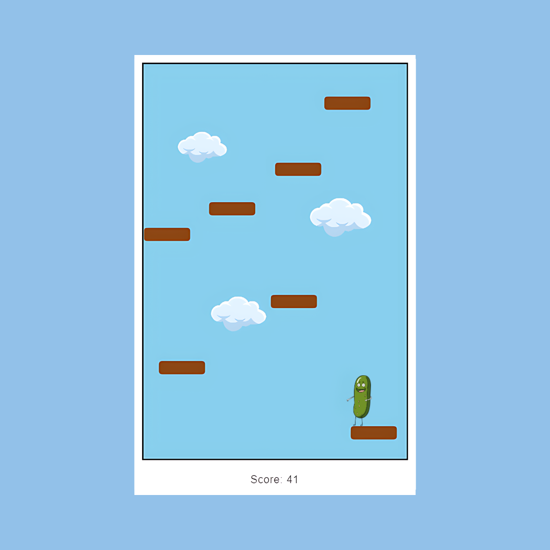 A game where you control a jumping pickle! Jump up an endless series of platforms...but don't fall!